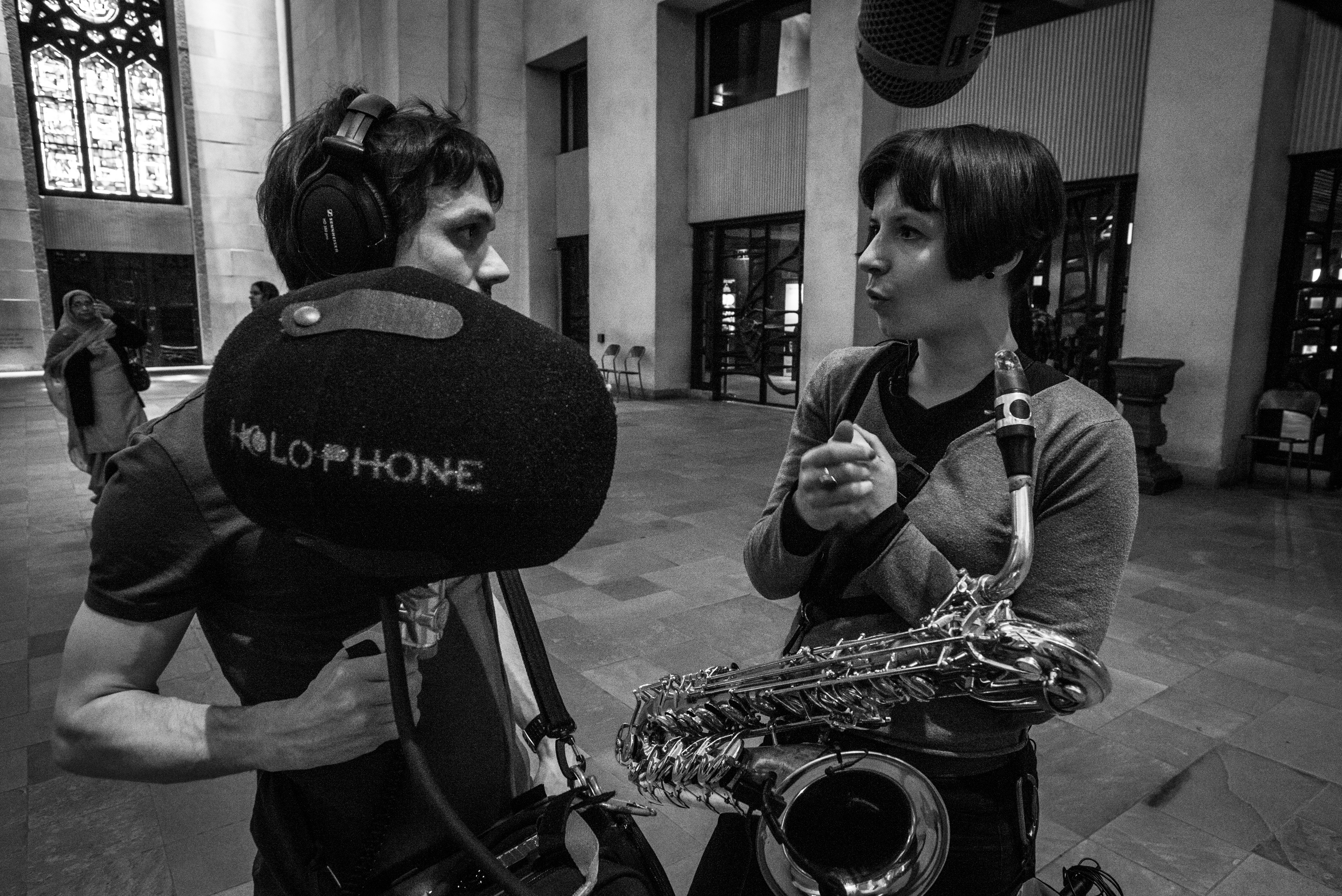 Les séries suivantes ont été réalisées lors de tournages de projets d’exploration cinématographique de la musique par Frédéric Dallaire. La saxophoniste Ida Toninato fait figure de protagoniste en poussant ses notes en des lieux réverbérés.Réverbérations, série photographique avec Ida Toninato, 2018 et 2020
